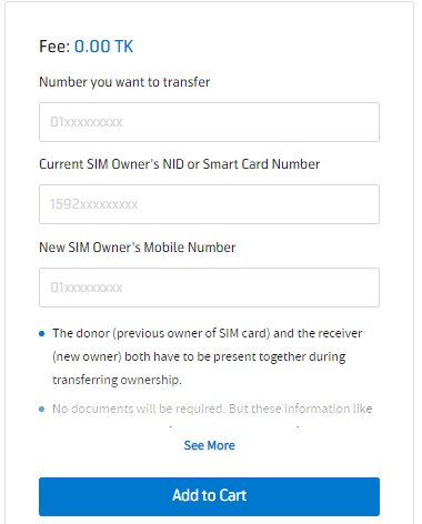 আর আপনারা ওপরের যাবতীয় তথ্য পূরণ করে সিম মালিকানা পরিবর্তন করার জন্য কোন প্রকার ফি প্রদান করতে হবে না। যে ফি গ্রহণ করা হচ্ছে, সেটি শুধুমাত্র সিম ডেলিভারি করার চার্জ।