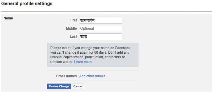 নিয়ম মানে বড় কোন ঝামেলা না। ভয় পাওয়ার কোন কারণ নাই। আপনার শুধু মনে রাখতে হবে, একবার নিজের ফেসবুক আইডি’র নাম পরিবর্তন করার পরে 60 দিন মানে দুই মাসেএর মধ্যে কোন নতুন নাম পরিবর্তন করতে পারবনে না।