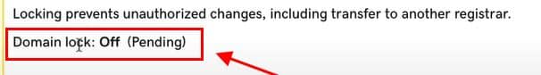 তারপরে, Domain Lock Off করার পরে আপনি নিচে ছবিটি দেখুন। উক্ত ডোমেইন লক অফ করার পরে আপনার সামনে পেন্ডিং দেখাবে। অল্প কয়েক মিনিট পরে অফ হয়ে যাবে।