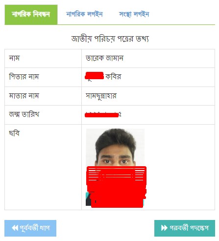 আপনারা ওপরে থাকা যে ফরমটি দেখতে পারছেন এটি জাতীয় পরিচয় পত্রের তথ্য হিসাবে দেখানো হবে। সেখানে আপনারা জানতে পারবেন।