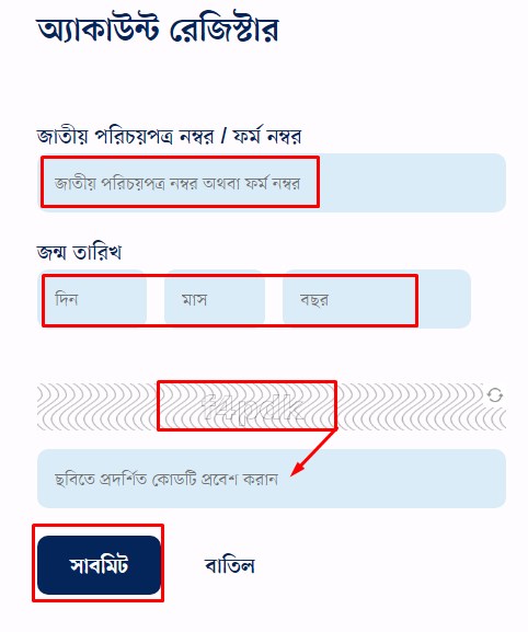 - আপনার জাতীয় পরিচয় পত্র নম্বর বা ফর্ম নম্বর।