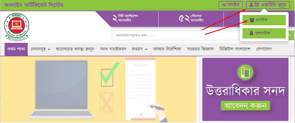 উক্ত ওয়েব সাইটে একাউন্ট খুলতে, কোন ফি দিতে হবে না আপনারা ফ্রী একাউন্ট খুলুন অপশনে ক্লিক করে দিবেন। এবং তারপর নাগরিক অপশনে ক্লিক করবেন। নিচের ছবি দেখুন-