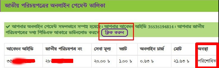 সে কোডটি প্রবেশ করিয়ে Go বাটনে ক্লিক করে দিবেন। তারপর এনআইডি কার্ড অনলাইন কপি ডাউনলোড করার জন্য নির্ধারিত ফি পরিশোধ এবং নিচের ছবির মত চলে আসবে দেখুন-