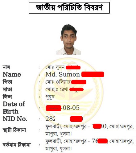 ভোটার আইডি কার্ড অনলাইন কপি বাংলাদেশ নির্বাচন কমিশন এর সার্ভার থেকে লোড হয় বিধায় এটি তথ্য সম্পূর্ণ সঠিক।
