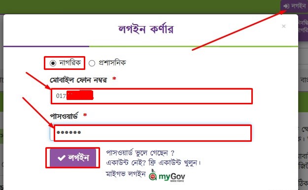 আপনারা উপরের ছবিতে নিজের জন্ম নিবন্ধন নাম্বার জন্ম তারিখ এবং মোবাইল নাম্বার দেয়ার পর জন্ম নিবন্ধন করণে ক্লিক করে দিবেন।
