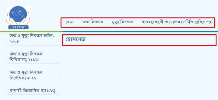 আপনারা উপরে যে ছবিটি দেখতে পারছেন এটি হচ্ছে জন্মনিবন্ধনের অফিসিয়াল ওয়েবসাইট। এ ওয়েবসাইটে প্রবেশ করার পর আপনারা অনেক গুলো মেনু দেখতে পারবেন।