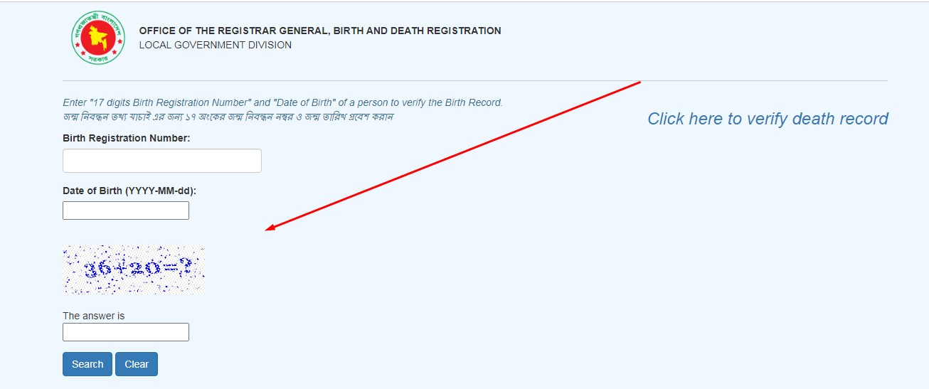 এখন আপনারা জন্ম নিবন্ধন এর নিবন্ধন নম্বর এবং জন্মতারিখ ব্যবহার করে, সহজে অনলাইন জন্ম নিবন্ধন যাচাই করতে পারবেন।