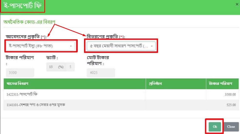 - পাসপোর্ট এর ডেলিভারি ধরন। যেমন- সাধারণ বা জরুরী।
