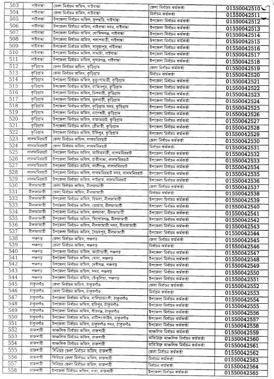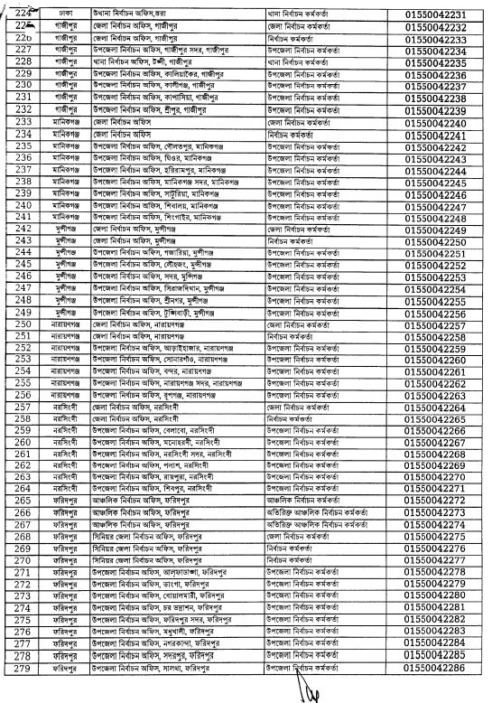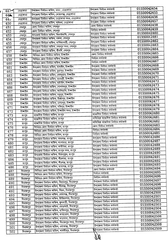 আমরা আপনার সুবিধার জন্য এখানে ছবি আকারে উপার্জনের নির্বাচন অফিসের ফোন নাম্বার তালিকা গুলো যুক্ত করেছি।