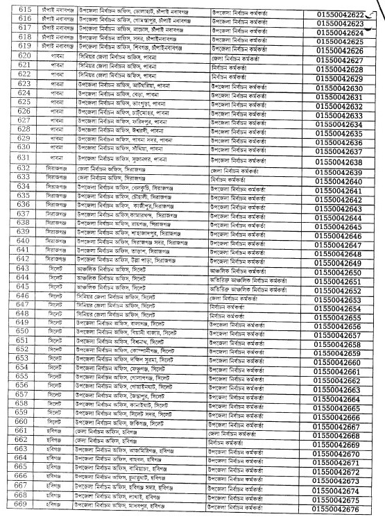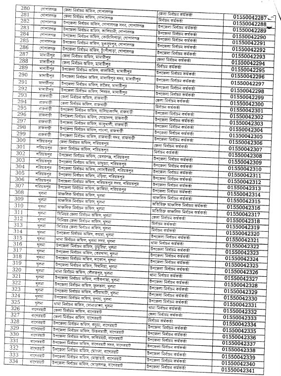 উপজেলা নির্বাচন অফিসের ফোন নম্বর পিডিএফ ডাউনলোড