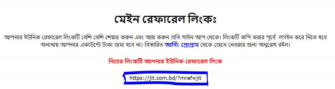 বিশেষ দ্রষ্টব্যঃ লিংক কপি করার পূর্বে অবশ্যই লগিন করে নিতে হবে। অন্যথায় সঠিক রেফারেল লিংক পাবেন না।