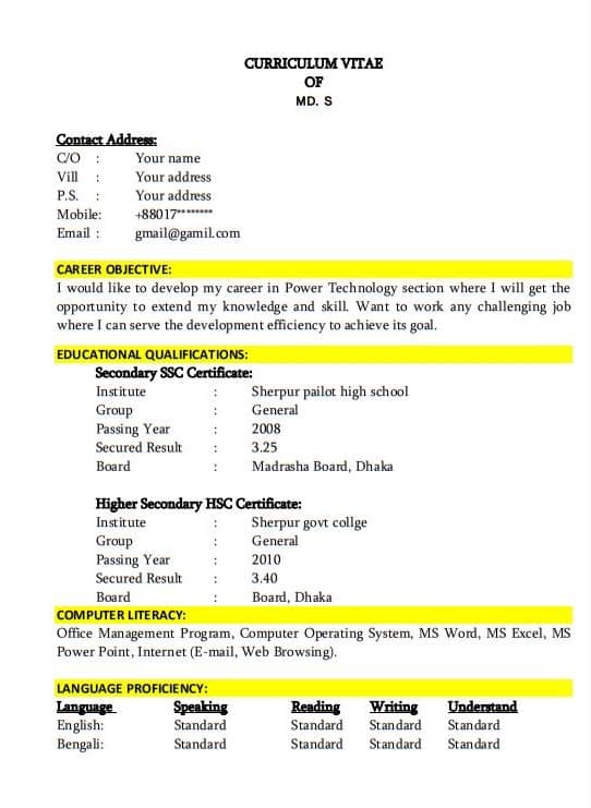 এছাড়া আপনার সুবিধার জন্য আমি নিচের অংশে সিভি ফরমেট প্রস্তুত করে দিয়েছি।
