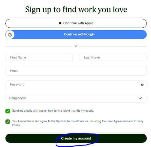 আপওয়ার্ক (Upwork) একাউন্ট তৈরির নিয়ম